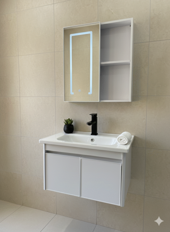 Combo Mueble Vanitory Baño 60 Cm Aluminio Espejo Led Tawak03