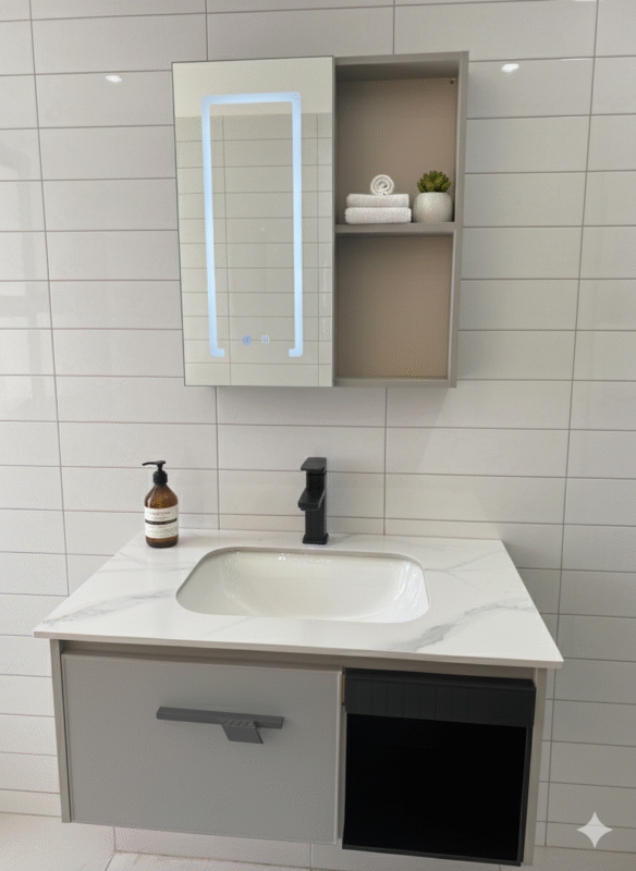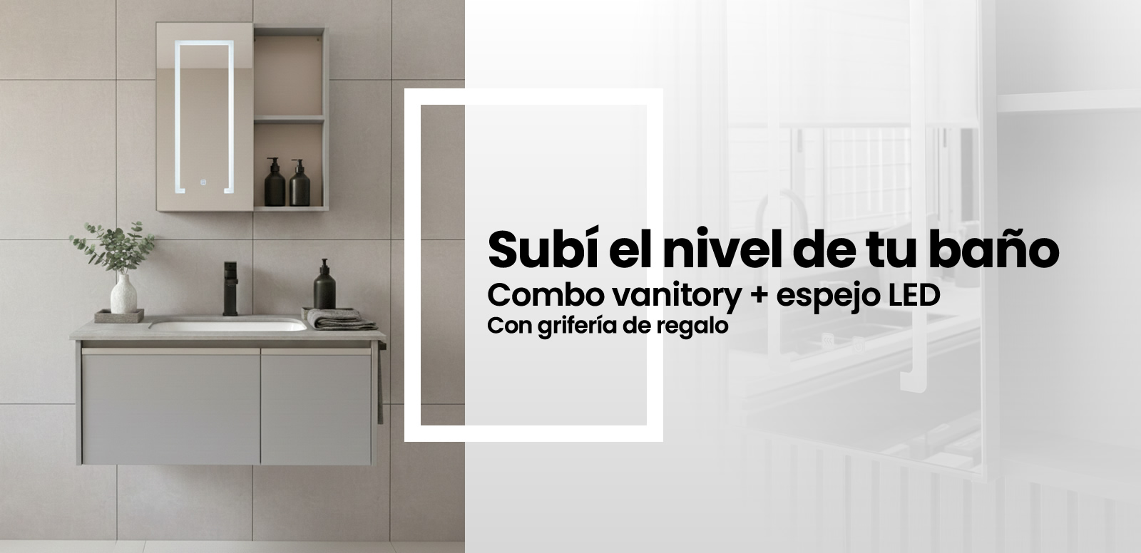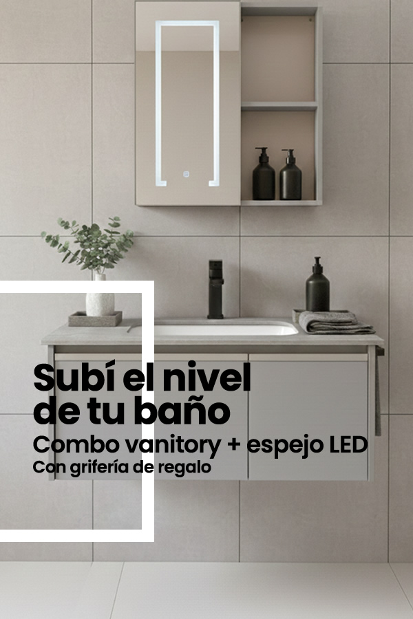 Combo Mueble Vanitory Baño 80 Cm Aluminio Espejo Led Tawak02