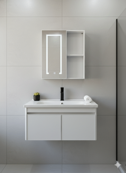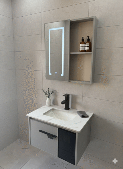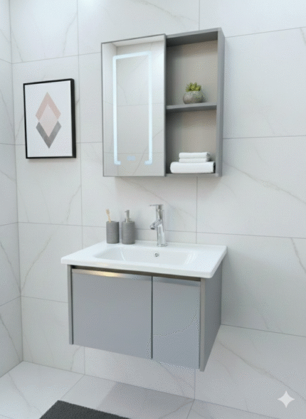 SF ONLINE – SET COMPLETO MODELO 02 60cm. LOZA TAWAK. EL COMBO INCLUYE: *VANITORY SIMIL MADERA DE PVC Y ALUMINIO