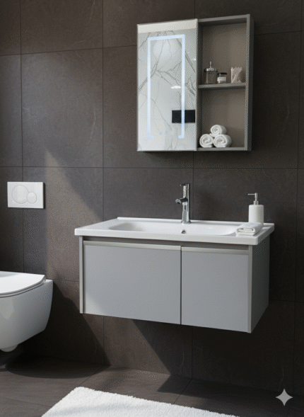 SF ONLINE – SET COMPLETO MODELO 02 de 80 CM. PIEDRA TAWAK. EL COMBO INCLUYE: *VANITORY SIMIL MADERA DE PVC