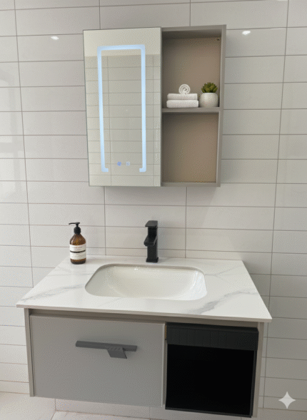 Combo Mueble Vanitory Baño 80 Cm Aluminio Espejo Led Tawak03