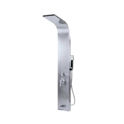 Con hidromasaje Material: Acero Inoxidable calidad 304 Color: plateado Acabado: cromado espejo. Medidas: Altura: 1,53 m / Ancho: 22 cm