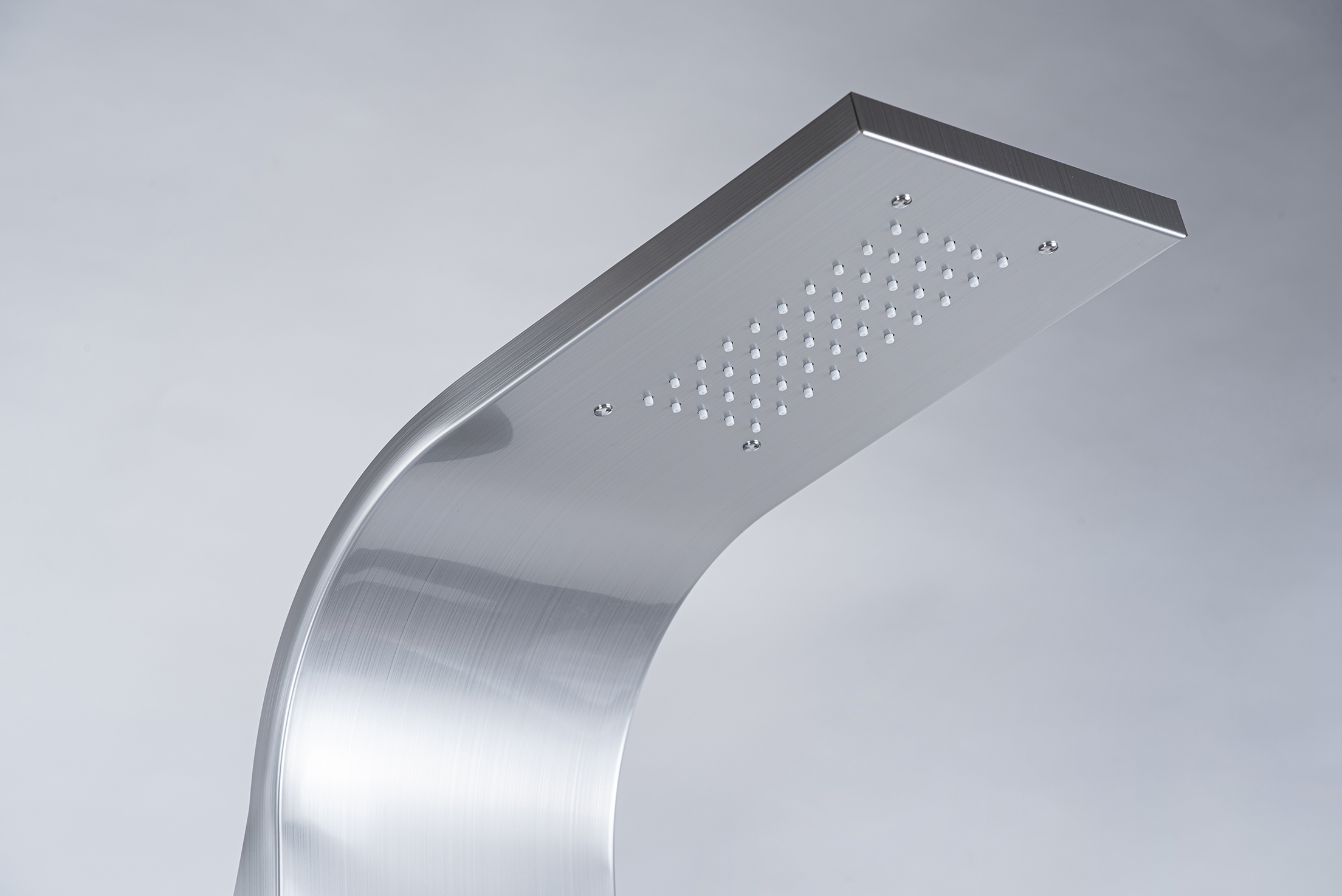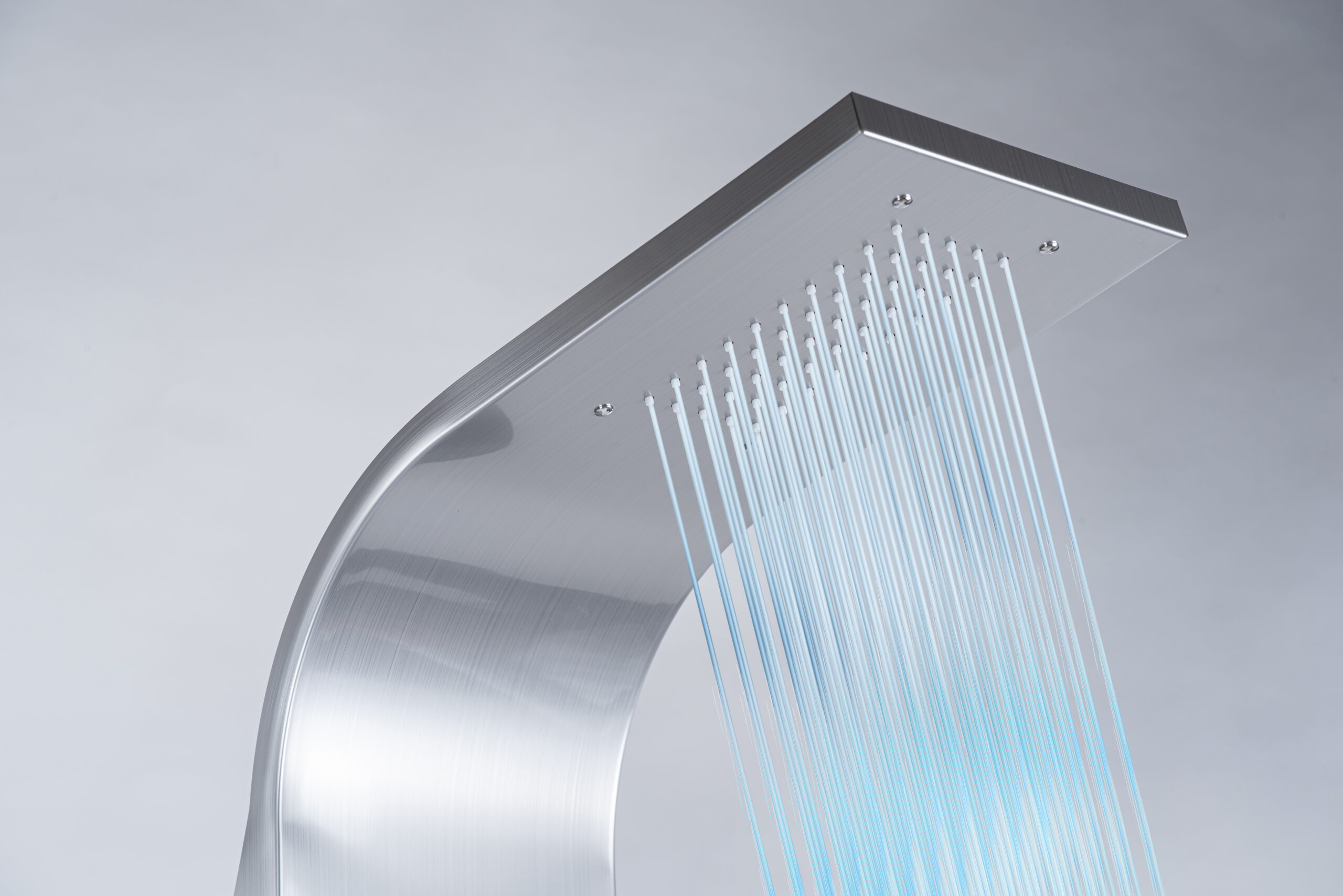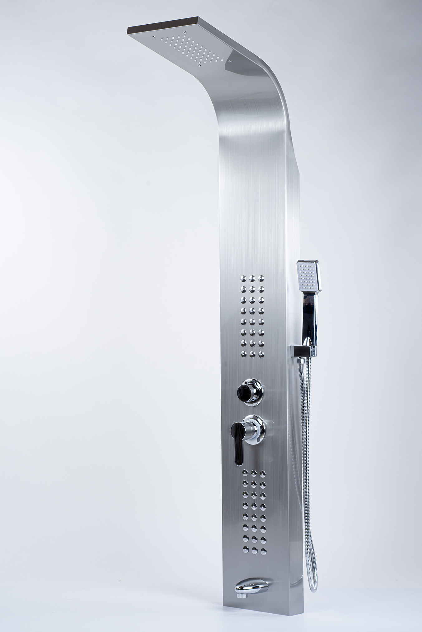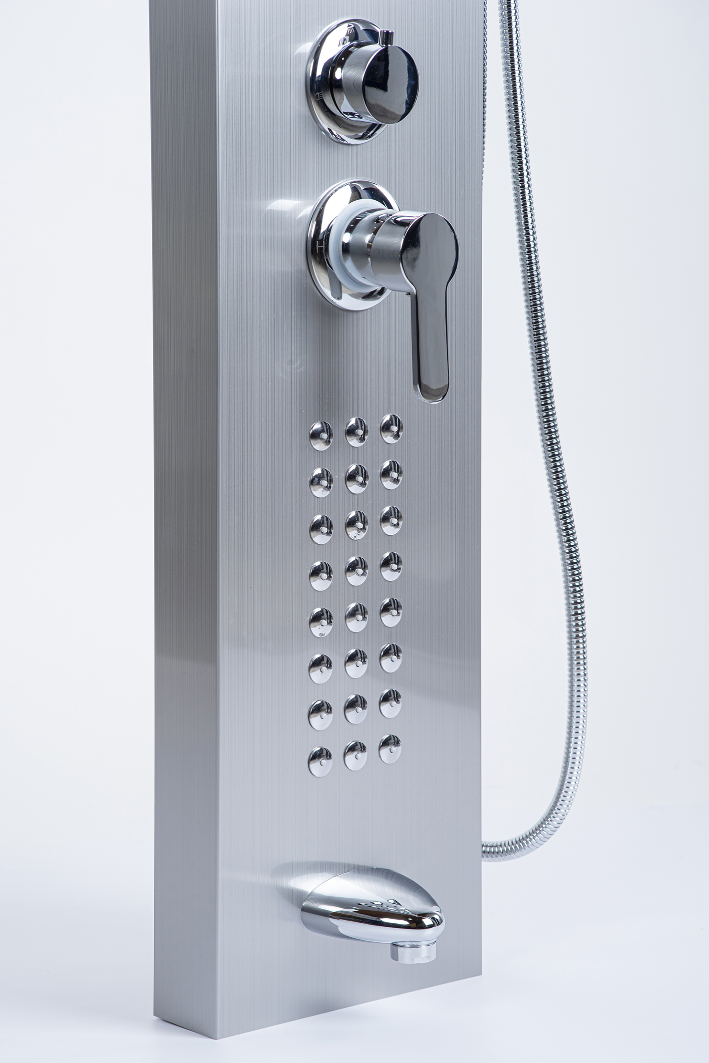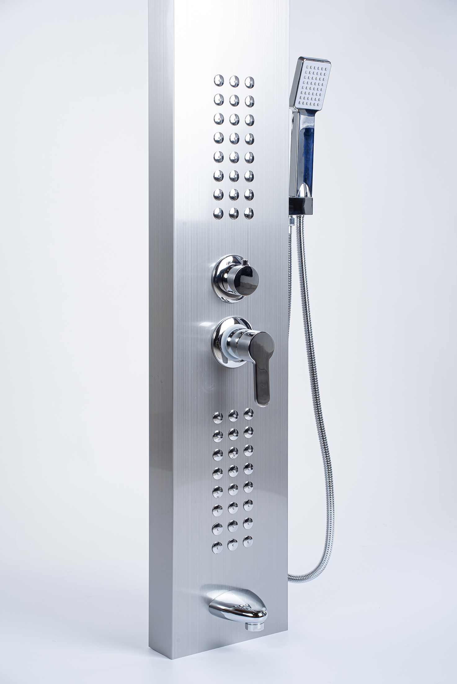Cantidad de Jets: 3, 1 spray superior, 2 frontales (tipo botón), canilla baja y duchador manual flexible 1.50mts