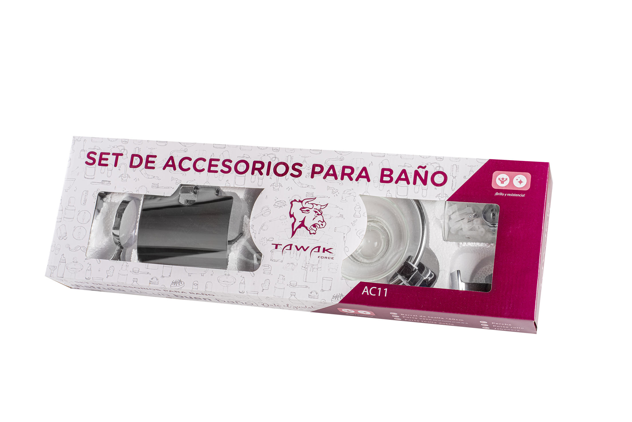 Transforma tu baño en un espacio moderno y elegante con el Set de Accesorios de Baño Ducha Plateados de Tawak Force.