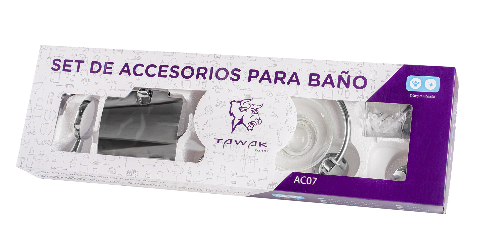 Set Accesorios Baño Ducha Acero Inox 6 Pzs Metalico Tawak Sf AC07