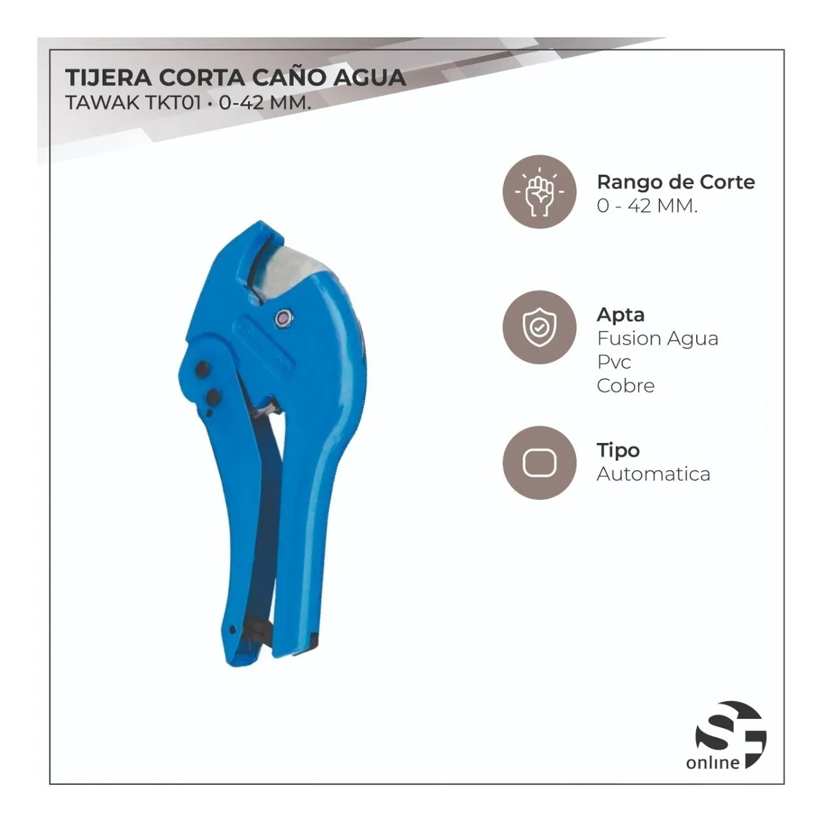 Tijera Pinza Corta Tubo Caño Tawak Tkt01 42 Mm Profesional