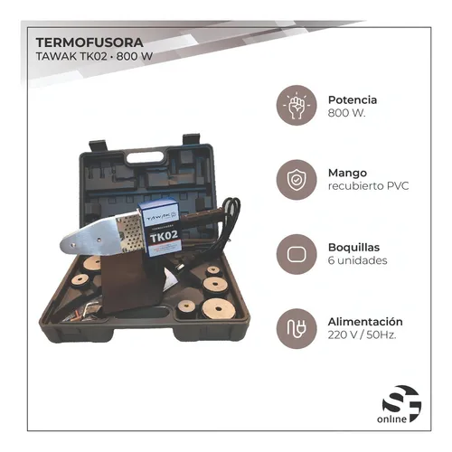 Termofusora Agua Gas Tawak 800 W + 6 Boq + Tijera + Maletin